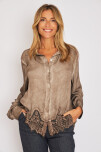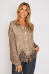 Camisa de raso teñido en frio con puntilla en bajo cuerpo