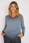 Remera tejida esc v c/detalle de puntilla en esc y puño
